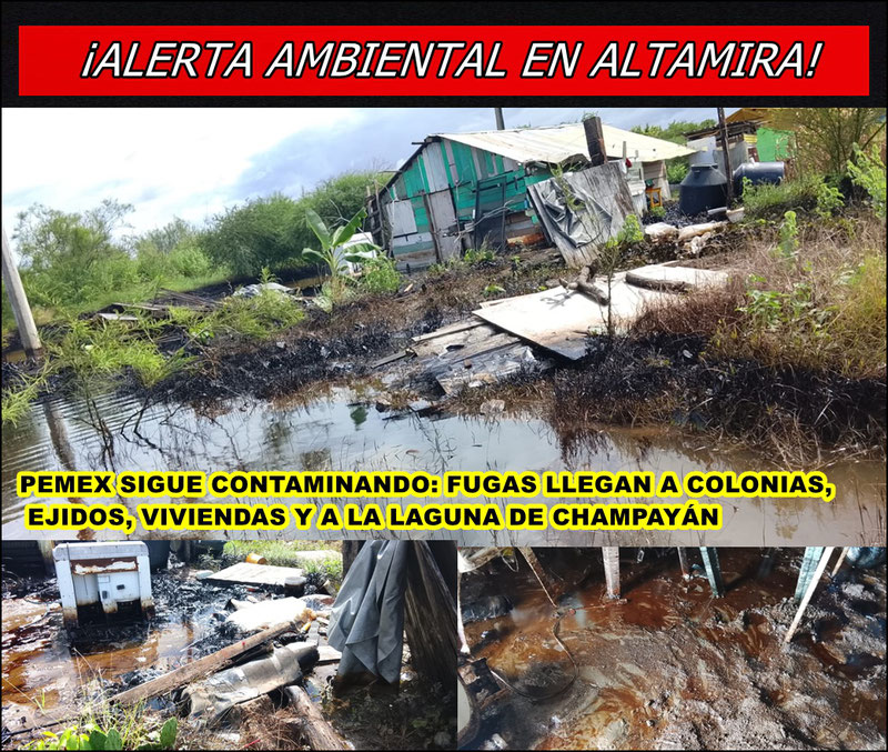 ALTAMIRA, TAMAULIPAS., 13 de octubre de 2025. – La emergencia ambiental en Altamira se agrava. Petróleos Mexicanos (PEMEX) continúa contaminando amplias zonas del municipio por fugas de hidrocarburo en ductos que atraviesan la Colonia Los Pinos, Unidos Avanzamos, el Ejido Maclovio Herrera y la Laguna de Champayán, donde los derrames ya afectan la tierra, el agua y la salud de las familias.