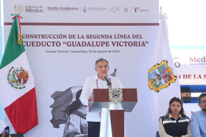 “Esta obra, tiene memoria y futuro, ya que hace 38 años, el Ing. Américo Villarreal Guerra inició la construcción de la Primera Línea del Acueducto, que por décadas nutrió de agua a la capital; hoy su hijo retoma el legado y lo proyecta hacia adelante, consolidando una segunda línea que asegurará el suministro del vital líquido para las generaciones presentes y futuras de Ciudad Victoria”, expresó el servidor público.