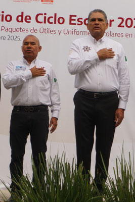 Miguel Alemán, Tamaulipas,. 01 Septiembre 2025.- En representación del gobernador Américo Villarreal Anaya, el secretario de Seguridad Pública de Tamaulipas, Carlos Arturo Pancardo Escudero encabezó la ceremonia de inauguración del ciclo escolar 2025-2026 celebrada en la Escuela Secundaria Técnica 49 “Wilfrido Massieu”, ubicada en el municipio de Miguel Alemán.