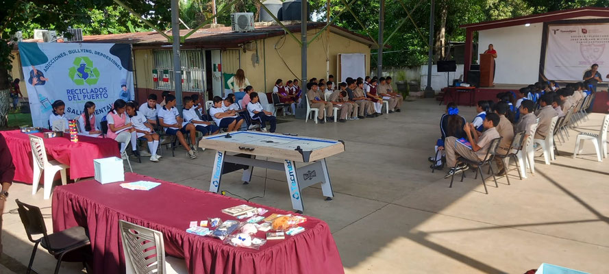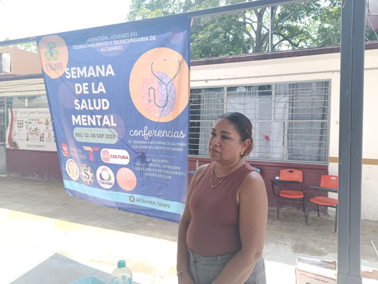 ALTAMIRA, TAM., 17 NOVIEMBRE 2023.- Es la gerente general de Reciclados del Puerto; María Hilaria Gómez Solís, quien se dio a la tarea de organizar la Semana de la Salud Mental, en la que fue apoyada por empresarios altamirenses que respaldan la atención a los adolescentes, a los que se les impartieron conferencias, talleres, juegos, cine, esparcimiento que los ayude además a alejarse de la adicción a drogas, así como del uso excesivo del celular y el internet para evitar que se dé el aislamiento social.